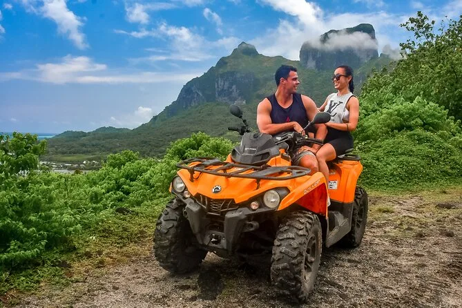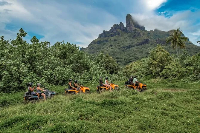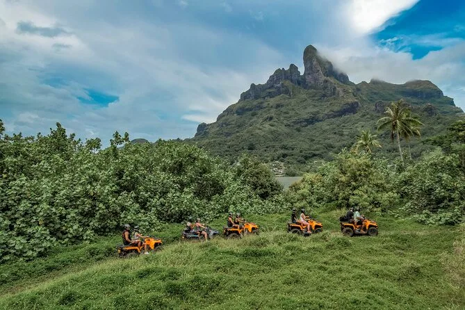 Partez en quad sur les sentiers sauvages de Bora Bora avec un guide local, faites une pause aux canons de la Seconde Guerre mondiale pour écouter des histoires, puis enchaînez avec un tour en jet ski autour du lagon. Une pause fruits frais avant un vrai déjeuner BBQ polynésien sur un motu — poisson grillé, show noix de coco inclus. Une aventure salée et pleine de sueur que vous n’oublierez pas quand vous goûterez à nouveau la mangue.