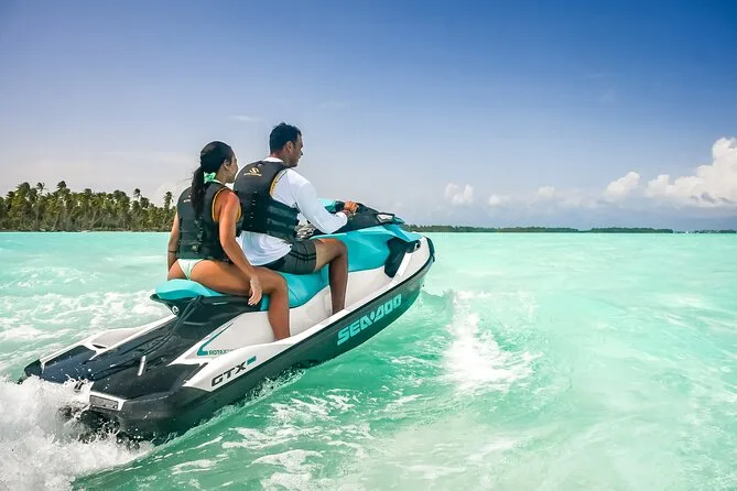 Le tour en quad dure environ 3 heures, la partie jet ski 2 heures, plus le temps pour le déjeuner sur le motu.