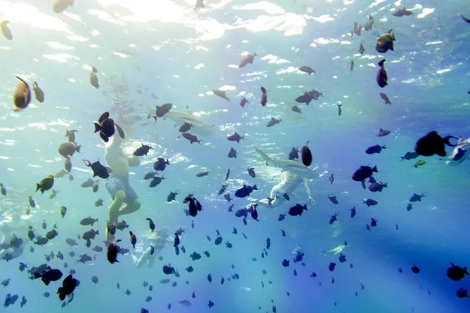 Glissez sur le lagon de Bora Bora avec un guide local, nagez avec des requins pointe noire et des raies douces, explorez les jardins de corail en snorkeling, et partagez un déjeuner barbecue sur un motu privé au son de la musique polynésienne portée par la brise. Rires, peau salée et souvenirs qui restent longtemps après avoir enlevé le sable.