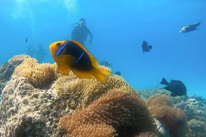 Votre matinée comprend la prise en charge à votre hôtel ou pension en bateau ou en voiture selon votre localisation à Bora Bora, tout l’équipement de plongée nécessaire (avec Nitrox offert si vous êtes certifié), deux plongées guidées sur des sites différents — généralement une dans le lagon et une à l’extérieur du récif — et entre les plongées, eau fraîche, thé chaud et biscuits servis à bord avant de vous ramener après la deuxième plongée.