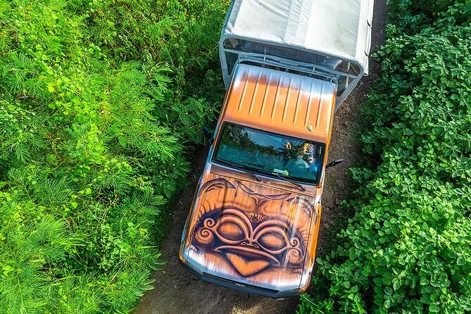 Rencontrez des artistes locaux dans leur atelier, goûtez des fruits directement cueillis dans la vallée de Faanui, roulez sur des pistes secrètes en 4x4 avec votre guide qui partage ses histoires, et faites une pause à un point de vue panoramique exclusif sur la lagune de Bora Bora. Rires, échanges vrais et souvenirs marquants garantis.