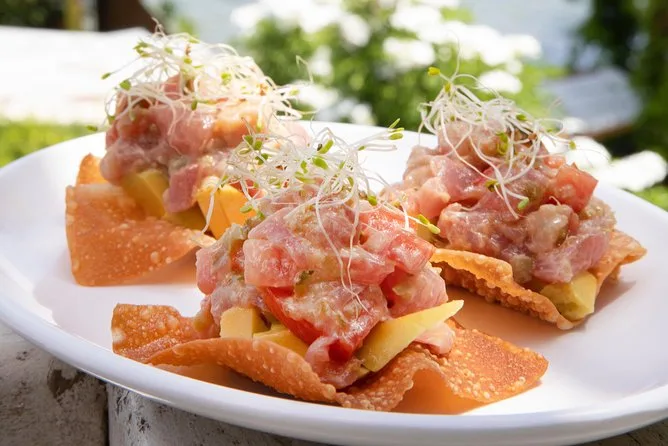 Vous dégusterez des plats tahitiens, chinois et français comme le poisson cru, le chow mein, la noix de mape, des tartes locales et des fruits de saison.