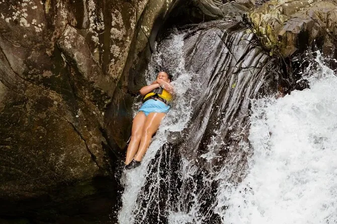 Accompagnez un guide local dans El Yunque, glissez sur des toboggans naturels en roche dans des bassins limpides, repérez les petites grenouilles coquí et écoutez des histoires qu’on ne trouve pas en ligne. Une aventure d’une demi-journée avec baignades, rires et chaussures boueuses — idéale pour respirer la vraie forêt tropicale, pas juste admirer le paysage depuis un bus.