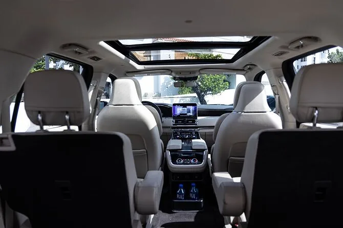 Votre expérience comprend un transfert privé en Lincoln Navigator L SUV de luxe avec sièges en cuir et double climatisation, prise en charge directement à la sortie des bagages ou du terminal de croisière par un chauffeur bilingue qui aide avec les bagages, eau fraîche à bord, espace pour jusqu’à six valises, et couverture de toutes les routes principales de Porto Rico selon la zone choisie lors de la réservation.