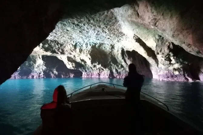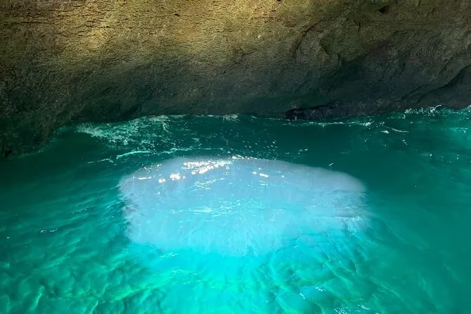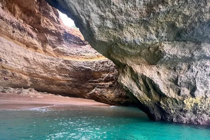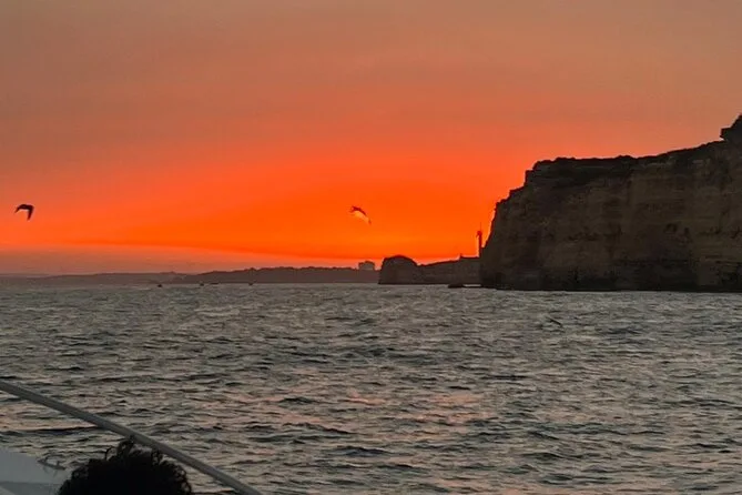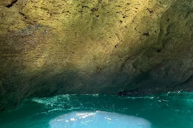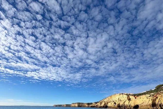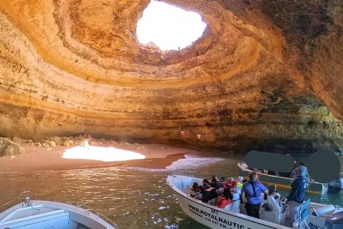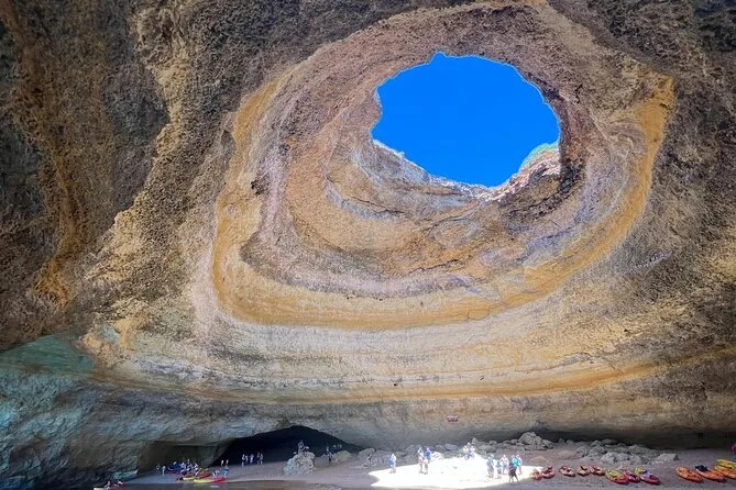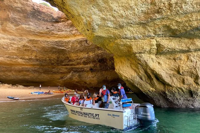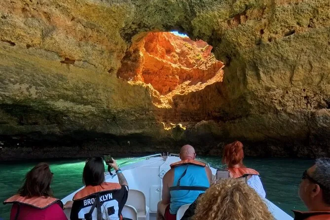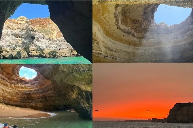 Votre journée comprend une balade guidée en bateau le long de la côte de l’Algarve avec des arrêts photos sur les plages et dans les grottes — y compris l’entrée dans la grotte de Benagil — une baignade à Praia da Marinha, et les commentaires de votre guide local avant le retour à la marina de Portimão.