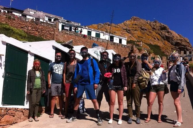 La visite comprend le transport aller-retour depuis Lisbonne, les billets de ferry, la balade en bateau à fond de verre, le matériel de snorkeling et un guide local.