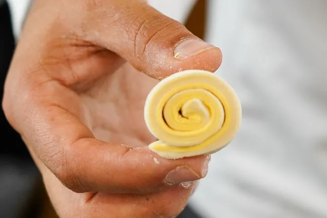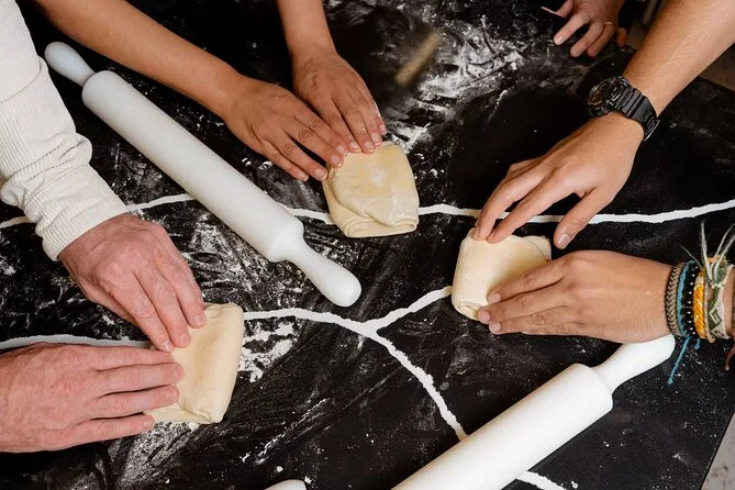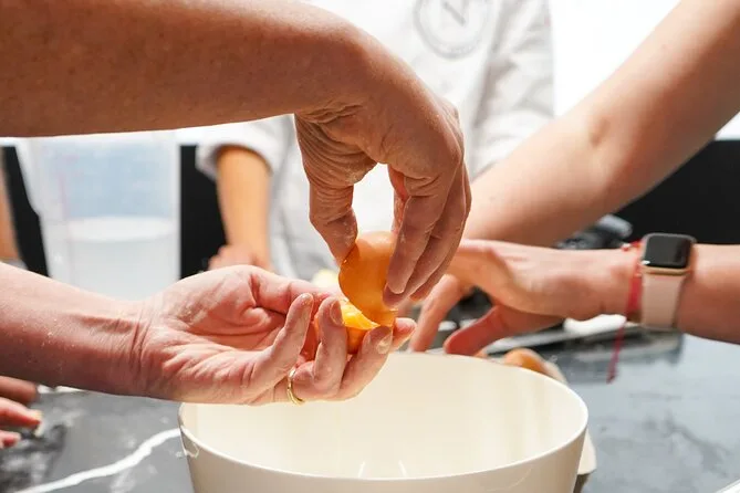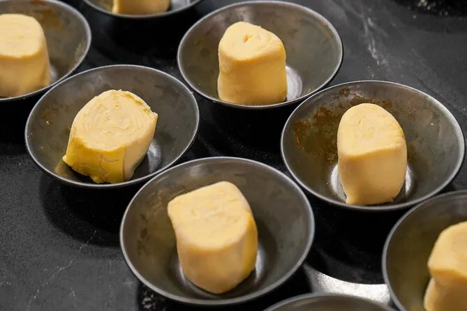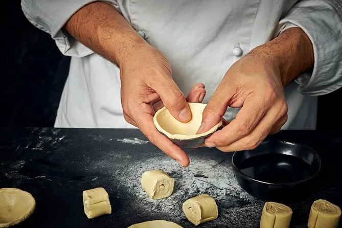 On a commencé par l’histoire du pastel de nata — João nous a raconté comment les moines l’avaient inventé il y a des siècles, ce qui m’a donné des frissons quand j’ai touché la pâte. Le rouleau à pâtisserie semblait plus lourd que prévu. Travailler la pâte feuilletée, c’est étrange mais tellement satisfaisant ; on sent quand elle est parfaite, à la fois élastique et froide. Mes cercles n’étaient pas parfaits (João a fait un clin d’œil en disant « Personne ne réussit du premier coup »), mais façonner les moules était un vrai plaisir — doigts collants inclus.