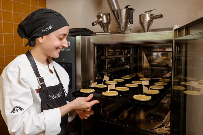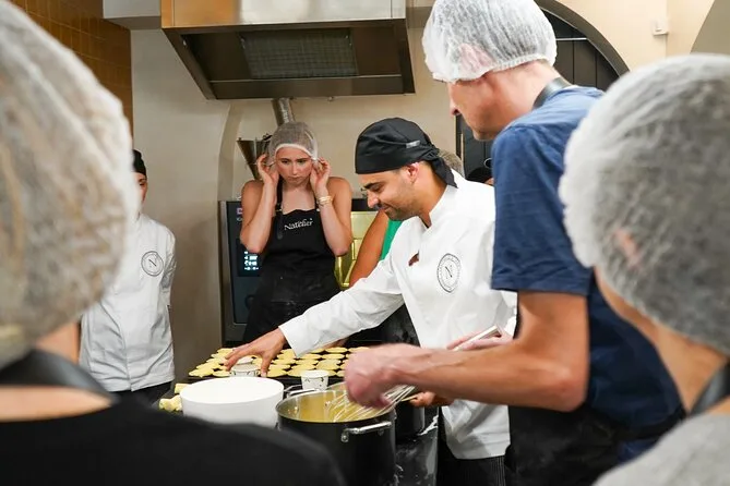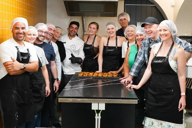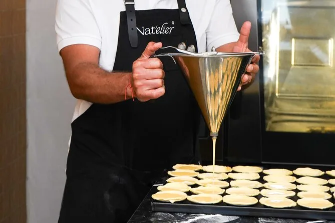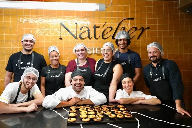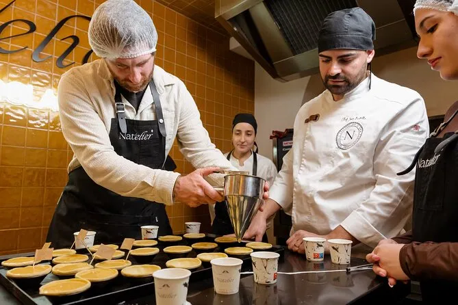 Votre journée inclut tout le matériel et les ingrédients pour faire des pastéis de nata dans la cuisine pro de Nat'elier à Lisbonne ; vous réaliserez au moins trois tartes vous-même avec l’aide d’un chef local, dégusterez de l’eau et votre choix de café ou thé avec vos pâtisseries encore chaudes, recevrez un certificat de participation et la recette complète par email après le cours.