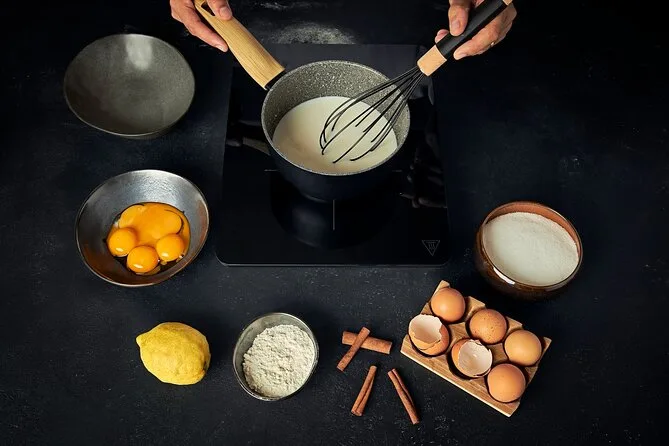 La première chose qui m’a frappé, c’est l’odeur — douce, œufée, presque caramélisée, flottant dans l’air dès qu’on a passé le comptoir chez Nat'elier. João, notre chef (récompensé mais humble), nous a tendu des tabliers en souriant : « Prêts à en mettre partout ? » J’ai ri, mais il ne plaisantait pas. La cuisine bourdonnait — plateaux qui s’entrechoquent, quelqu’un qui chuchotait en portugais à propos du beurre. On avait l’impression d’entrer dans un secret, pas juste un cours de pastel de nata de plus à Lisbonne.