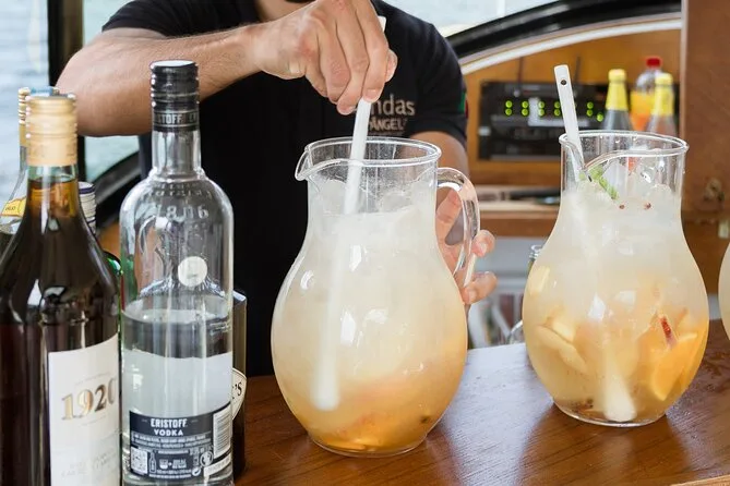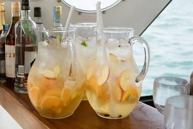 L’open bar propose sangria à volonté, vins blanc et rosé, bière, sodas comme Coca-Cola et Fanta, eau et café.
