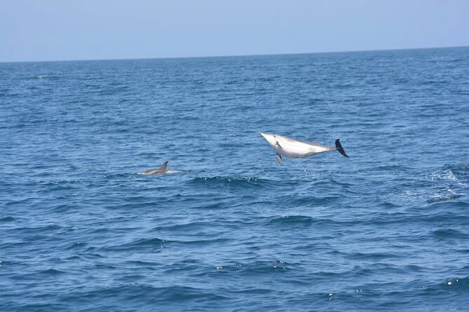 Partez de Sesimbra avec un biologiste marin pour chercher dauphins et baleines le long de la côte sauvage d’Arrábida. Observez les groupes joueurs de près, nagez ou faites du snorkeling dans des criques turquoise, savourez un verre de vin local sur le pont et écoutez des légendes de pirates sous les falaises baignées de soleil. Une journée authentique dont vous vous souviendrez longtemps.