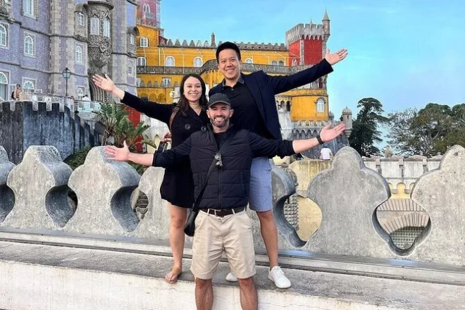 Nous sommes montés dans le van juste à côté du Hard Rock Café à Lisbonne — encore un peu endormis, pour être honnête — et notre guide Rui lançait déjà des blagues sur le café portugais. Le trajet jusqu’à Sintra n’a pas duré longtemps, mais on avait l’impression de quitter la ville pour un monde plus ancien, plus vert. Premier arrêt : le centre historique de Sintra. Il y a une odeur particulière — pâtisseries sucrées et pierre humide après la pluie. Rui nous a guidés dans ces ruelles étroites (j’ai failli perdre le groupe en admirant les azulejos), puis il nous a fait entrer dans une boulangerie où il nous a absolument fait goûter les travesseiros. J’ai fini avec du sucre glace partout sur ma chemise, mais ça n’a dérangé personne.