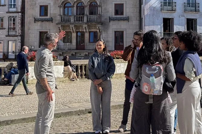 Votre journée comprend la prise en charge au centre de Lisbonne en véhicule climatisé, un guide local expert pour explorer les palais et la côte de Sintra, les billets d’entrée pour le parc et les terrasses du Palais de Pena ainsi que pour Quinta da Regaleira (pas de file d’attente ni frais supplémentaires), et une assurance — pensez juste à prendre de l’argent pour le déjeuner à Apples Village avant de rentrer en fin d’après-midi.