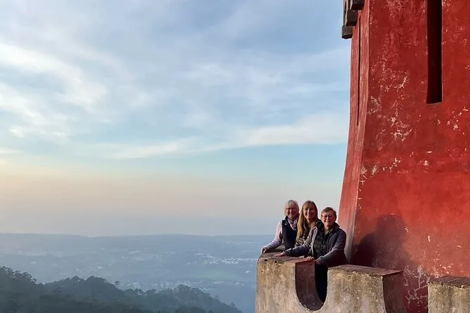 Le Palais de Pena était notre dernier arrêt — ces couleurs éclatantes sont encore plus intenses en vrai, surtout quand les nuages se dissipent un instant et que tout s’illumine en jaune et rouge sur la forêt sombre. On a flâné sur les terrasses et longé les remparts (le vent là-haut ne rigole pas). Rui nous a raconté un peu d’histoire mais nous a aussi laissé libres d’explorer ; j’ai aimé cet équilibre. À ce moment-là, mes jambes étaient fatiguées mais ma tête pleine — alors oui, si vous pensez à une excursion d’une journée à Sintra depuis Lisbonne avec billets inclus, foncez. Je repense encore à cette vue sur la vallée en partant.