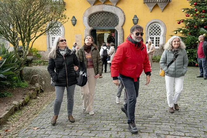 À l’intérieur du Palais de Pena, c’était presque impossible de ne pas toucher partout — des azulejos partout, certains ébréchés ou fanés, des murs jaune vif qui piquaient presque les yeux sous le soleil. Notre petit groupe déambulait de pièce en pièce pendant que Rui racontait des anecdotes sur les rois portugais (il avait ce don de les rendre vivants, pas juste des noms). Les jardins du palais sentaient la terre humide et les aiguilles de pin. Ensuite, nous avons eu du temps libre dans le village de Sintra — j’ai goûté la queijada pour la première fois (un gâteau un peu friable et sucré), j’ai vu un couple se chamailler gentiment pour retrouver leur chemin près de la fontaine. L’endroit semblait à la fois paisible et plein de vie.