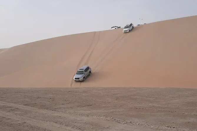 Votre journée comprend la prise en charge en 4x4 climatisé avec un chauffeur-guide anglophone, du dune bashing dans le désert du Qatar près de Doha, une courte balade à dos de chameau (idéale pour les photos), du sandboard si vous le souhaitez, une assurance tout au long du trajet, ainsi que des arrêts pour un thé arabe et des photos avec un faucon à la plage de Mesaieed avant de revenir de la Mer Intérieure.