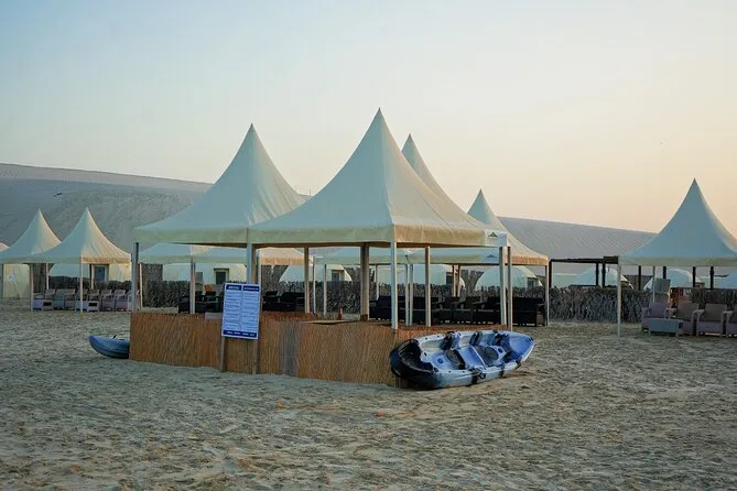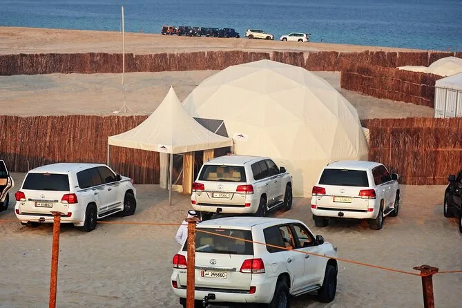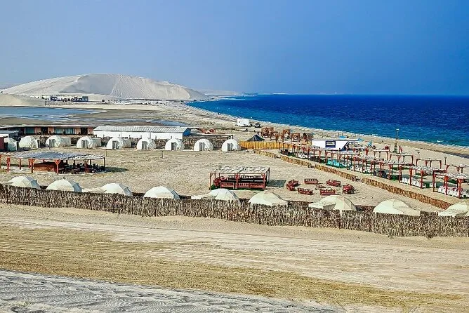 Votre journée comprend la prise en charge privée à l’hôtel à Doha, un dune bashing guidé avec un chauffeur professionnel à travers les dunes de Mesaieed jusqu’à Khor Al Udaid (la Mer Intérieure), des balades à dos de chameau à Sealine Beach si vous le souhaitez, de l’eau en bouteille et des boissons non alcoolisées toute la journée, un buffet déjeuner ou dîner au camp Al Rahal avec temps libre près du feu de camp ou sur les transats—et oui, l’assurance voyage est aussi incluse avant un retour confortable.