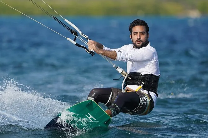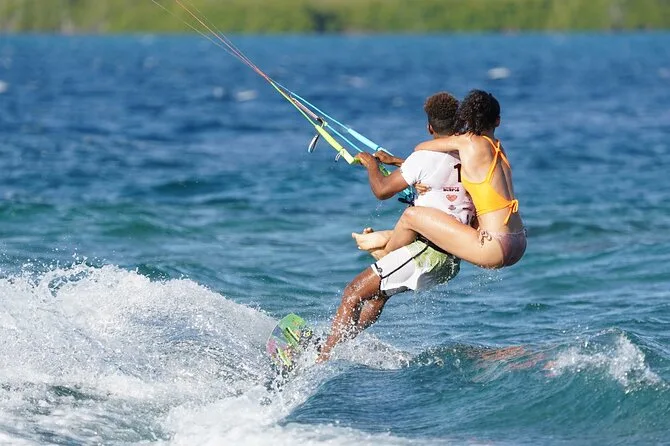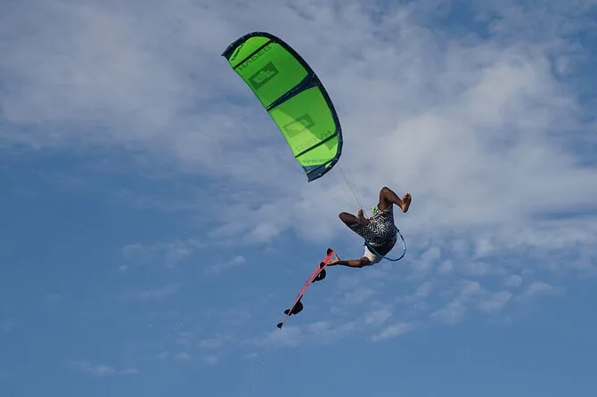 Votre cours privé comprend tout le matériel de kitesurf : voile, planche, barre, harnais, gilet et casque. Venez juste avec vous-même — et un peu de crème solaire !
