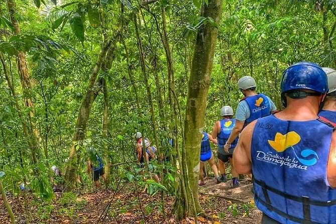 Votre journée comprend la prise en charge aller-retour depuis Amber Cove ou Taino Bay (ou votre hôtel), les frais d’entrée au parc des cascades de Damajagua, des guides locaux certifiés avec équipement de sécurité comme casques et gilets, ainsi qu’un déjeuner buffet dominicain traditionnel avec boissons avant un retour confortable en véhicule climatisé.