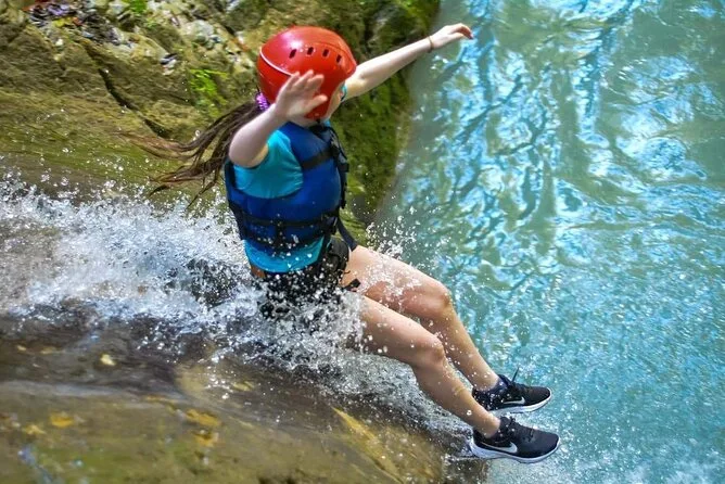 Vous commencez à la septième cascade et descendez plusieurs chutes en glissant ou sautant jusqu’au ranch.