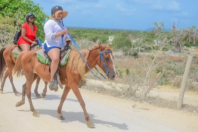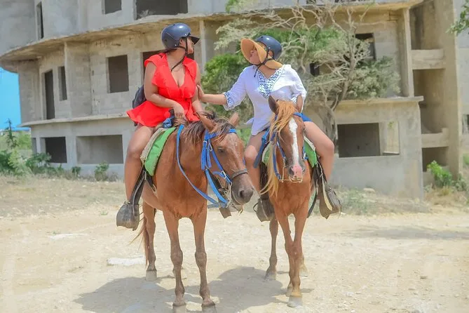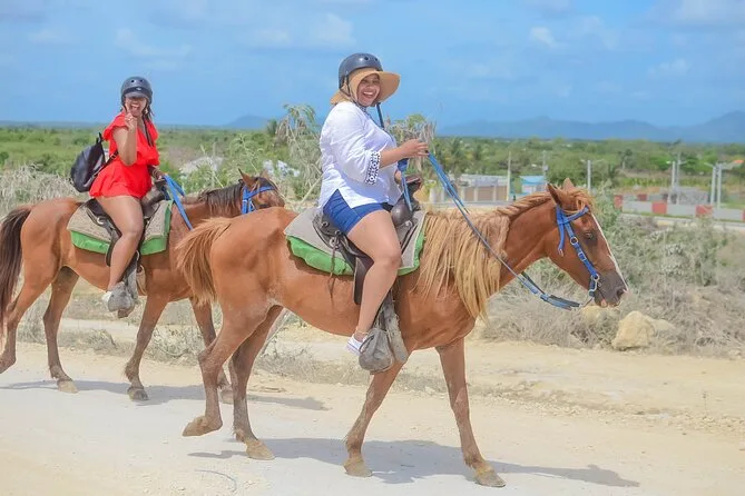 Votre journée comprend le transport aller-retour depuis votre hôtel ou point de rendez-vous à Punta Cana, la mise à disposition de casques pour la sécurité lors de la balade à cheval et la conduite des quads/buggys, des dégustations de produits bio dominicains comme le café et le chocolat à la ferme locale (avec mamajuana pour les plus de 18 ans), une visite guidée de la grotte d’eau pour nager, un moment de détente sur la plage sauvage de Macao entourée de falaises calcaires, et le retour après l’aventure.