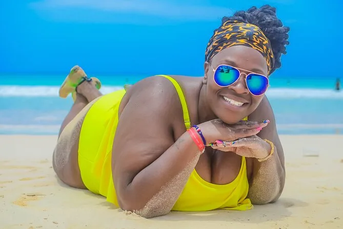 La grotte d’eau était plus froide que prévu — on descend dans une piscine bleue et résonnante, et pendant un instant, il n’y a que le bruit de l’eau qui goutte et les rires des gens qui sautent. La fraîcheur m’a picoté la peau, mais c’était parfait après toute la poussière de la balade. Pour finir, la plage Macao, beaucoup plus sauvage que celles des hôtels — des falaises de chaque côté, les vagues qui déferlent assez fort pour couvrir les conversations. On est restés là un moment, sans trop parler.