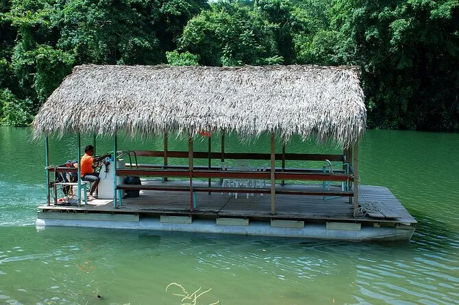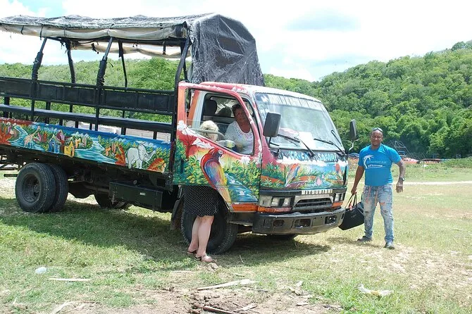 Votre journée comprend la prise en charge à Bayahibe ou Dominicus et tous les transports en camion safari à ciel ouvert. Un guide local expert vous accompagne à chaque étape — du marché de Higuey à la visite de la fabrique familiale de cigares — avec dégustations de canne à sucre fraîche et de rhum. Le déjeuner au bord de la rivière est inclus, avec boissons comme Coca-Cola, Sprite, eau et café servis tout au long de la journée. Et pour vous détendre après le repas, votre place sur la barque-plateforme vous attend pour une paisible balade sur la rivière Chavón.
