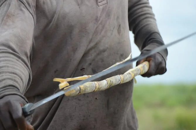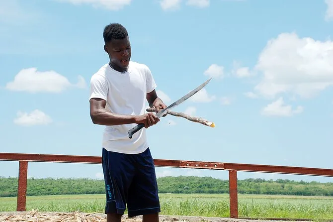 La prochaine étape était une petite fabrique de cigares cachée derrière des portails peints. Les ouvriers bougeaient vite mais souriaient quand on jetait un œil. L’une d’elles nous a montré comment rouler les feuilles de tabac — ses mains marquées par des années de pratique — et nous a offert une dégustation accompagnée d’un trait de rhum local. Sur la route, on a traversé des rangées infinies de canne à sucre qui ondulaient sous la brise. Notre guide s’est arrêté pour nous laisser essayer de couper un morceau (le machette semblait plus lourde qu’elle n’en avait l’air), puis on a échangé quelques mots avec des habitants d’un village batey qui nous saluaient en passant.