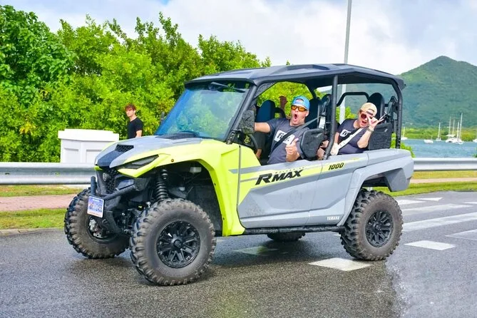 Vous conduirez votre propre UTV ou ATV à St Maarten avec un guide local, traversant Philipsburg et les côtés français et hollandais, avec des pauses baignade et pour nourrir les iguanes à Oyster Pond. Rires, photos et la fameuse « marche de Moïse » sur l’eau peu profonde vous attendent, pour des souvenirs authentiques de l’île.