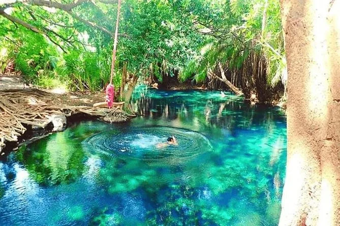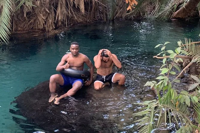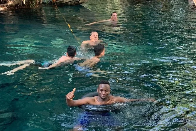 Le bassin est naturel et l’eau peut être fraîche ; la baignade est possible mais demande toujours de vérifier les conditions avec votre guide.