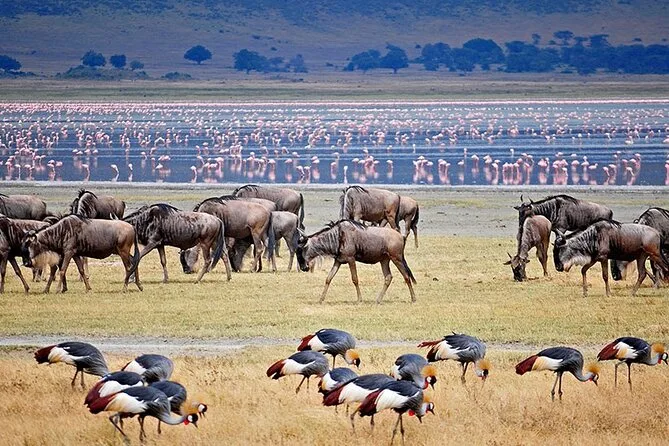 Vous verrez des éléphants à Tarangire, admirerez l’immensité du cratère de Ngorongoro et observerez les flamants roses au lac Manyara—tout cela avec un guide local qui s’occupe de tout, du transfert aux lodges. Attendez-vous à des rencontres animales authentiques et des moments simples—comme un déjeuner sous les acacias—qui resteront en mémoire longtemps.