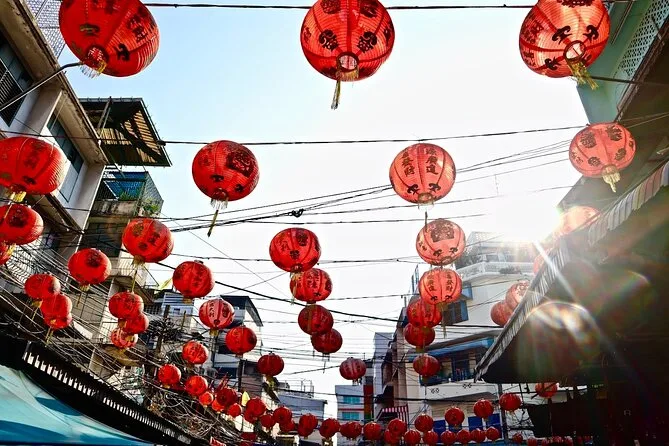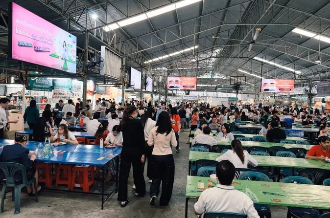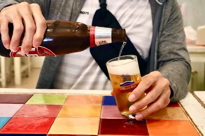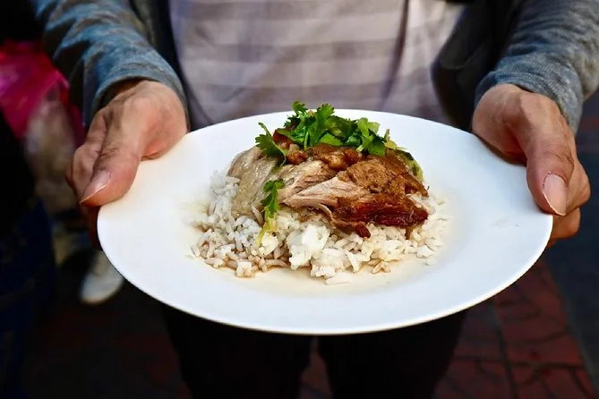 Votre journée comprend des balades guidées dans Chinatown, Hua Lamphong et Talat Noi à Bangkok avec plus de dix dégustations authentiques comme le poulet au basilic épicé ou le porc satay (selon le jour), des raviolis aux crevettes, des brioches vapeur au porc rouge, de la salade de papaye, des crêpes thaï croustillantes, des boulettes au sésame noir dans du thé au gingembre et même un plat secret exclusif — le tout avec un guide local qui partagera des histoires à chaque arrêt.