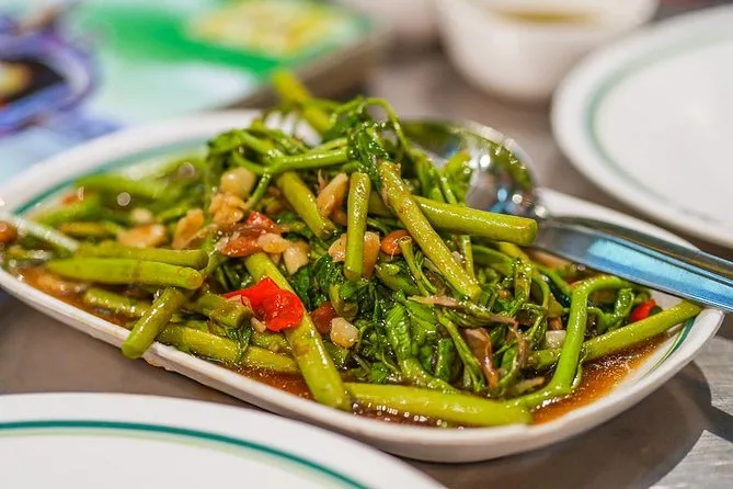 J’ai essayé de prononcer « dim sum » comme Lek — elle a ri, ce qui m’a donné le courage de goûter à tout sans me sentir ridicule. Il y avait cette boisson aux herbes, à la fois terreuse et étonnamment fraîche, puis des plats de fruits de mer où on entendait le grésillement avant même de goûter. À un moment, un vendeur a brandi un crabe avec une pince en nous faisant un clin d’œil ; je ne sais toujours pas s’il draguait ou s’il était juste fier de sa prise. La balade street food privée avançait sans jamais être pressée — Lek savait toujours quand faire une pause ou nous éloigner des scooters qui fonçaient dans les ruelles.
