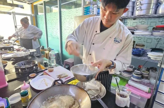 Votre demi-journée comprend la prise en charge à la station BTS On Nut, une visite guidée dynamique du marché pour acheter des ingrédients frais, des cours pratiques avec un chef anglophone dans une cuisine climatisée, tous les plats que vous aurez choisis, ainsi que le déjeuner ou dîner selon la session, de l’eau glacée à volonté, et un accès en ligne aux recettes et vidéos pour refaire les plats chez vous.