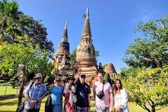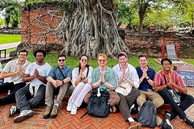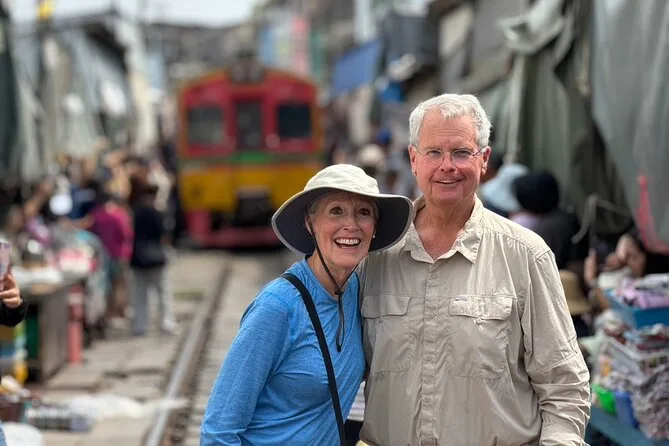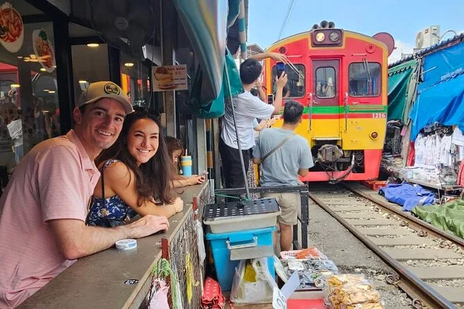 Goûtez le riz à la mangue frais au marché ferroviaire de Maeklong, vivez le frisson des trains qui passent à vos pieds, naviguez en bateau longtail entre les fermes de fleurs jusqu’au marché flottant de Damnoen Saduak, et flânez sous les arbres millénaires parmi les ruines d’Ayutthaya—tout ça avec un guide local qui connaît tous les raccourcis et les meilleures gourmandises à tester.