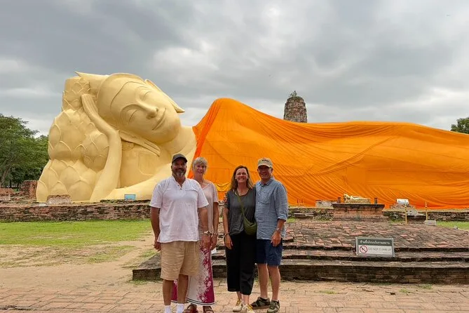 Dernier arrêt, Wat Lokaya Sutharam—le Bouddha couché paraît interminable, presque paresseux sous la chaleur de l’après-midi. On prend des photos mais surtout on reste là un moment, sans trop parler. Sur le chemin du retour vers Bangkok, je m’endors en écoutant Pim discuter doucement avec le chauffeur du temps qu’il fera demain ou peut-être du dîner—je capte quelques mots, mais l’ambiance est chaleureuse.