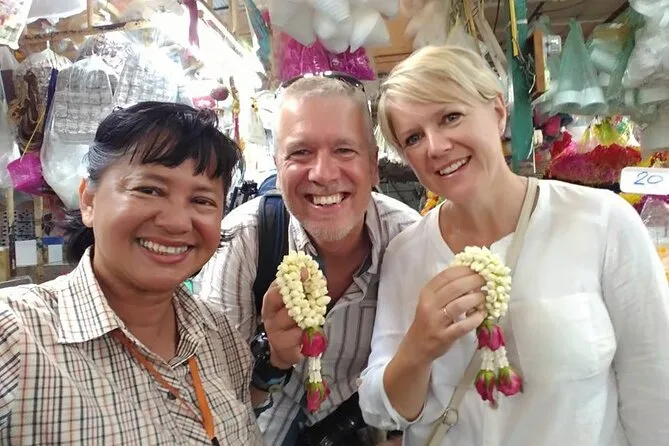 Accompagnez un guide local agréé pour une visite privée et flexible du Palais Royal, Wat Pho, Wat Arun, marché aux fleurs Pak Klong Talad et maison des artistes Klong Bang Luang, avec prise en charge à l’hôtel. Attendez-vous à des échanges authentiques, des surprises sensorielles (encens, brochettes grillées !) et des petits instants mémorables.