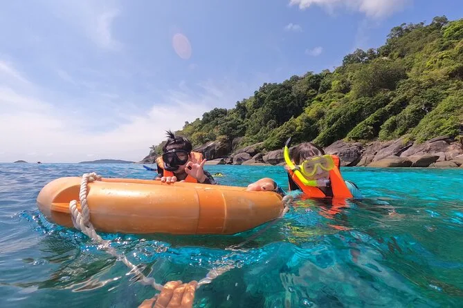 Votre excursion privée aux îles Similan comprend tout le matériel de snorkeling, de l’eau en bouteille, des boissons non alcoolisées, des encas comme des fruits frais, un transport privé en bateau avec toilettes à bord — et des guides sympathiques qui connaissent tous les coins secrets à découvrir !