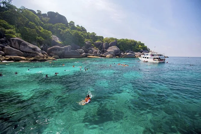 Votre journée comprend la prise en charge tôt le matin à votre hôtel à Phuket, les transferts jusqu’au quai de Khao Lak, tout le matériel de snorkeling avec serviettes et kit de sécurité, les frais d’entrée au parc national inclus, un petit déjeuner léger avant l’embarquement, des arrêts snorkeling éco-responsables guidés sur plusieurs îles avec une équipe experte, un déjeuner thaï servi sur le sable de Princess Bay, ainsi que des snacks et fruits frais à votre retour avant le transfert vers votre hôtel en soirée.
