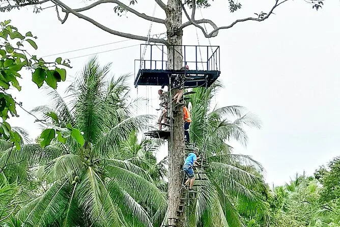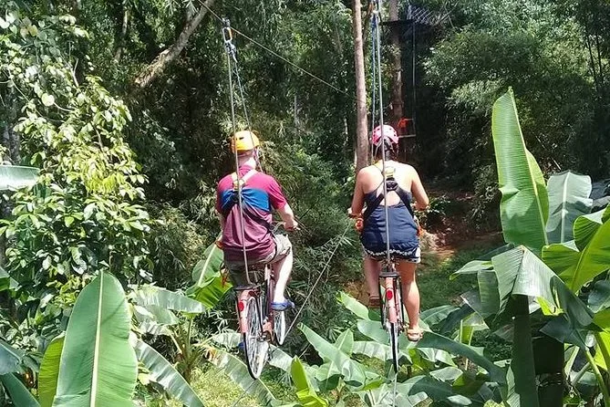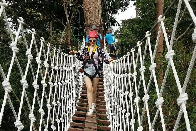 Volez au-dessus de la forêt tropicale de Koh Samui lors d’une visite guidée en tyrolienne avec transfert hôtel inclus. Faites battre votre cœur en traversant jusqu’à 18 plateformes, partagez des rires avec les guides locaux et découvrez la vie de la jungle de près. Équipement de sécurité et eau en bouteille fournis pour que vous puissiez vous concentrer sur le vol — et peut-être goûter quelques fruits locaux en chemin.