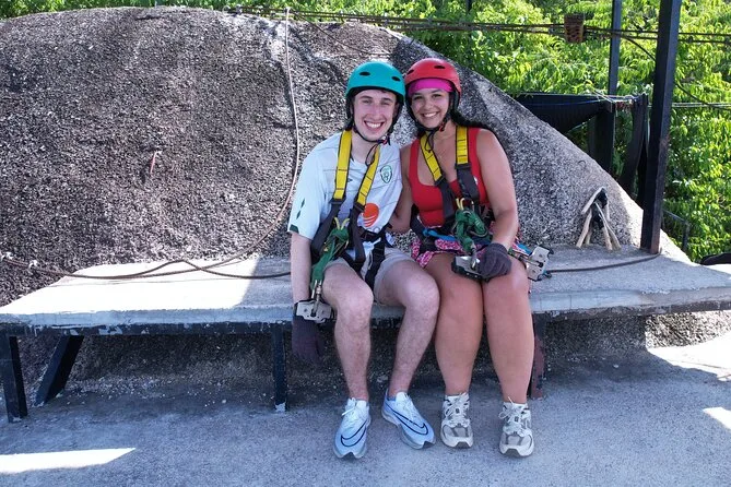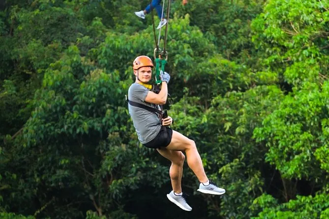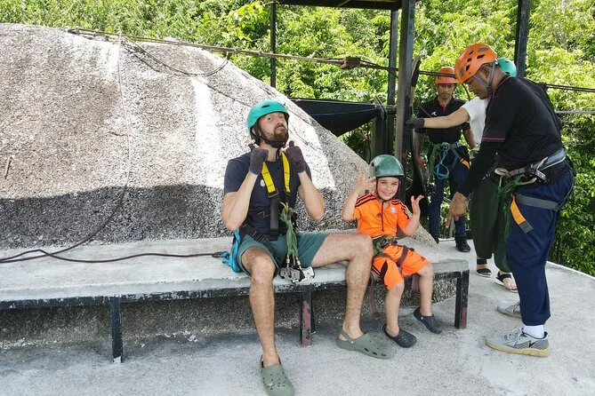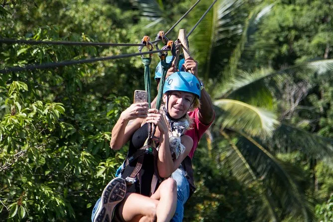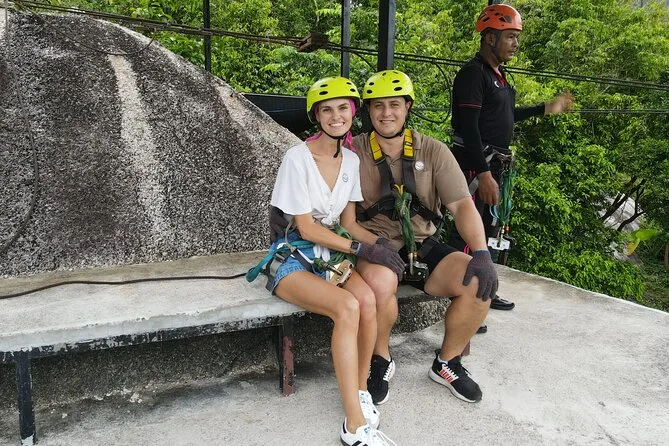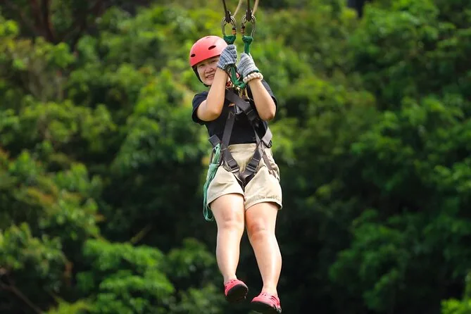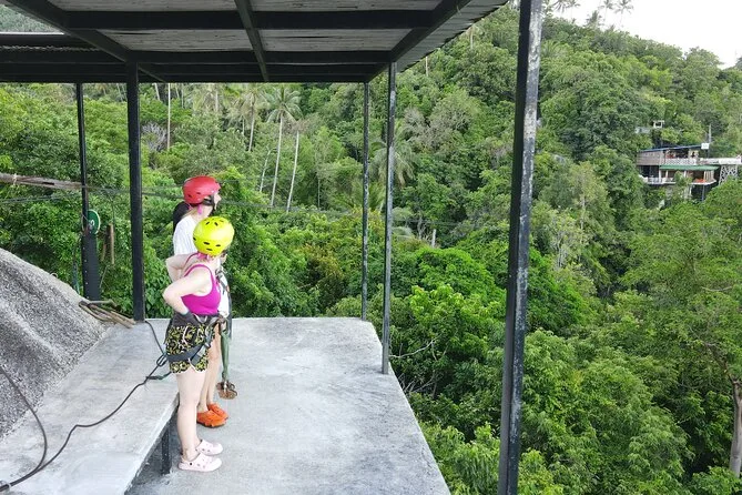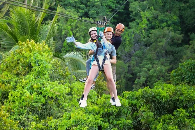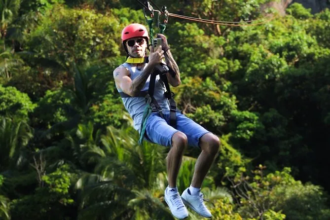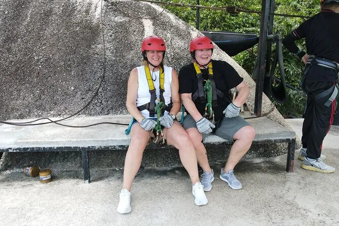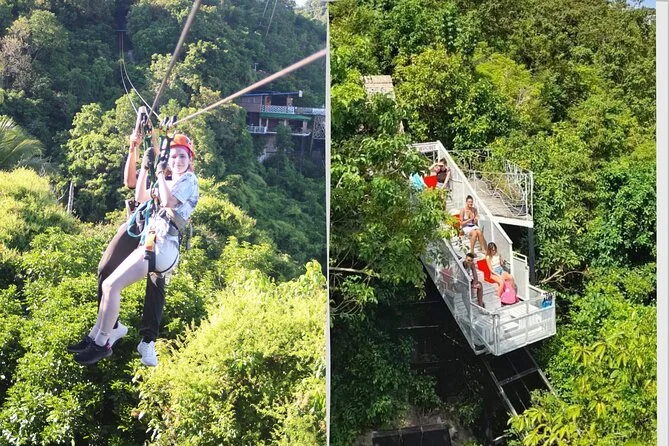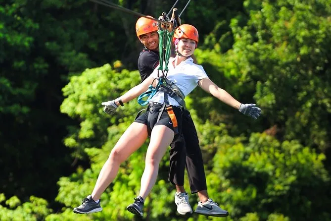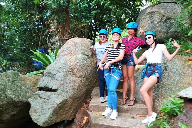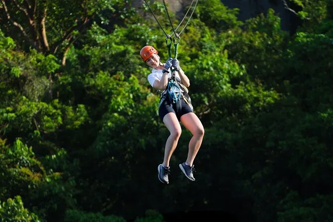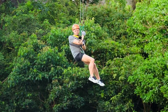 Montez en téléphérique sur la colline de Lamai, puis survolez les palmiers en tyrolienne avec une vue imprenable sur la côte de Koh Samui. Ensuite, détendez-vous au bar panoramique ou testez un massage fish spa près de Valentine Stone. Rires, saveurs locales et souvenirs inoubliables garantis.