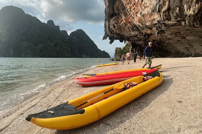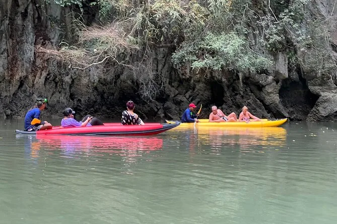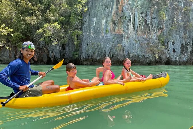 Votre journée comprend le transfert aller-retour depuis votre hôtel à Phuket ou Khao Lak, toutes les entrées au parc national payées à l’avance pour éviter tout souci à bord. Les repas sont servis tout au long de la journée — déjeuner, collations, dîner — avec beaucoup de fruits et boissons. Un guide expérimenté anglophone (ou germanophone certains jours) vous accompagne, tout l’équipement de kayak est fourni, y compris sacs étanches et gilets de sauvetage, avant un retour confortable en minibus le soir.