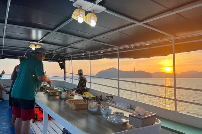 Nous glissions déjà le long de ces falaises vertigineuses de Phang Nga Bay quand notre guide, Lek, m’a tendu une bouteille d’eau fraîche en souriant comme s’il gardait un secret. Le bateau était plus grand que ce que j’imaginais — assez d’espace pour s’étaler ou simplement s’appuyer sur la rambarde en regardant l’eau passer du vert éclatant à un gris argenté, sous les derniers rayons du soleil. J’avais sauté le petit-déjeuner (on nous avait conseillé de ne pas trop manger) et franchement, j’étais content : le premier repas à bord était bien meilleur que prévu — du riz épicé, un plat parfumé à la citronnelle, et des fruits qui semblaient tout juste cueillis. L’air portait une légère odeur d’algues mêlée à celle du diesel du moteur — curieusement rassurant.