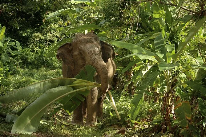 Marchez aux côtés d’éléphants sauvés dans les collines forestières de Phuket avec un guide local qui connaît leur histoire par cœur. Nourrissez-les à la main, faites des pauses dans des cabanes en bambou pendant qu’ils se promènent librement autour de vous, et partagez des rires avec d’autres voyageurs autour d’un déjeuner végétarien thaï frais au bord de l’étang. Ici, la paix règne — vous ne voudrez peut-être plus repartir.