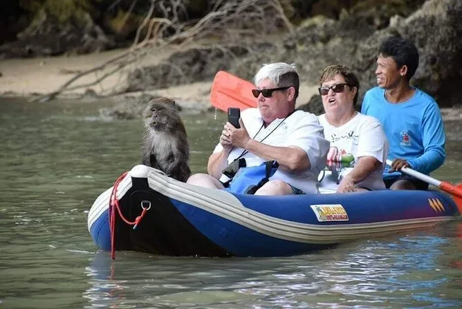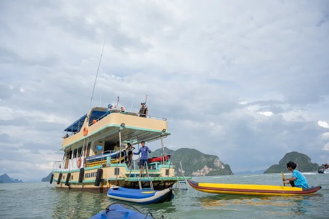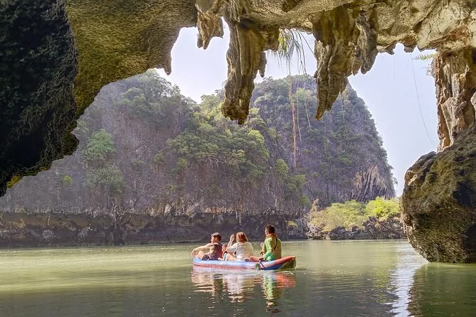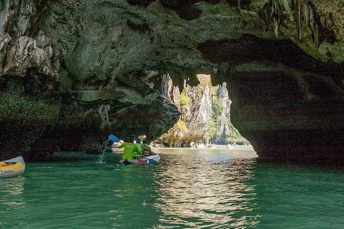 Votre journée comprend la prise en charge à votre hôtel à Phuket, tous les frais d’entrée et taxes, des canoës sécurisés avec des rameurs locaux pour vous guider dans les grottes et lagunes, des boissons non alcoolisées, des fruits et snacks pour le déjeuner, puis un dîner thaï complet servi à bord au coucher du soleil dans la baie de Phang Nga, avant de rentrer de nuit après avoir vu le plancton bioluminescent illuminer l’eau sous vos mains.