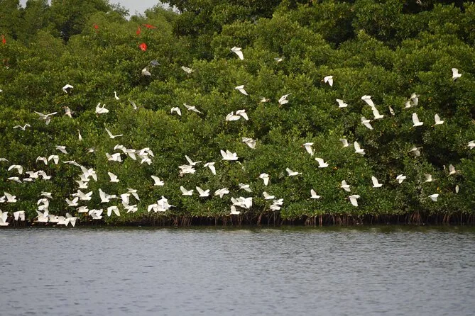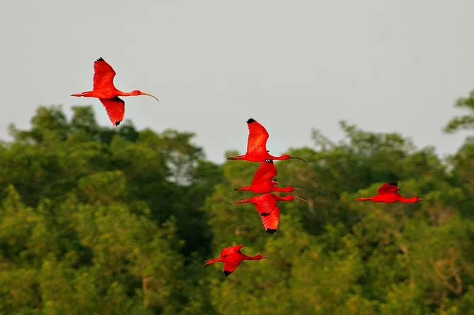 Glissez en bateau au coucher du soleil dans les marais de Caroni à Trinidad avec un guide local, observez hérons, caïmans et autres animaux avant d’admirer les vols d’ibis rouges qui se posent dans les mangroves. Profitez de moments calmes sur le lagon, des récits du guide et d’une prise en charge à l’hôtel pour un départ facile — sans oublier ce rouge flamboyant au cœur du soir.