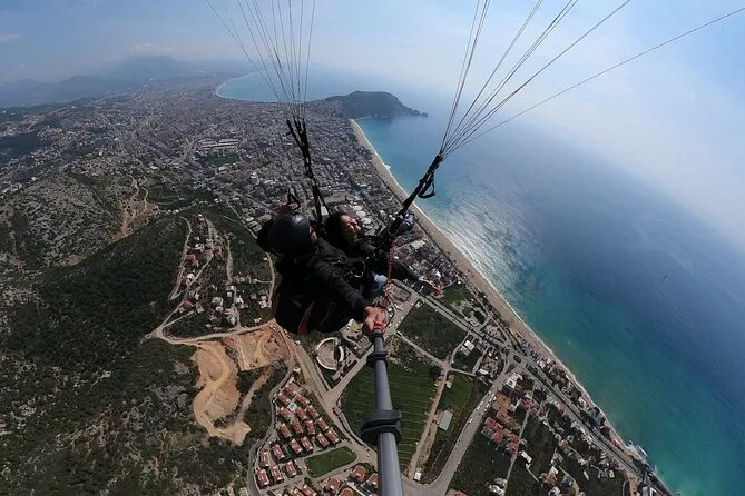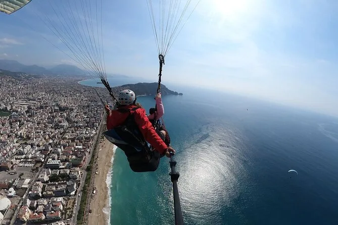 Vous décollerez à 700 mètres d’altitude au-dessus d’Alanya avec un pilote certifié, glissant environ 20 minutes au-dessus de la plage de Cléopâtre et ses eaux turquoise. Sentez l’air frais sur votre visage, pilotez si vous le souhaitez, puis atterrissez en douceur sur le sable. Transfert hôtel inclus — apportez juste votre courage et laissez-vous surprendre.