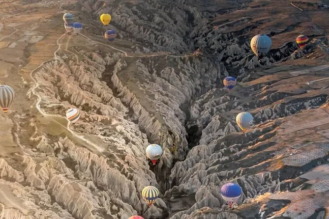 Vous partirez avant l’aube pour être pris en charge à votre hôtel en Cappadoce et assisterez au gonflage des montgolfières sous la lumière naissante. Guidé par un pilote local expérimenté, vous glisserez silencieusement au-dessus des cheminées de fées et des vallées anciennes pendant environ une heure. Après l’atterrissage, célébrez avec du champagne et repartez avec un certificat personnalisé, souvenir de ce calme unique au-dessus du monde.