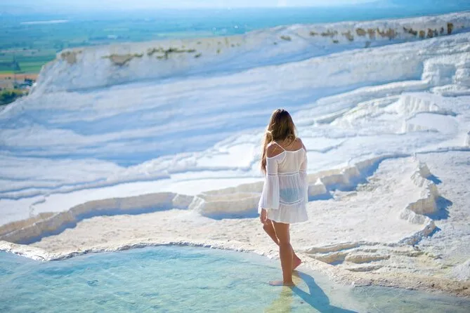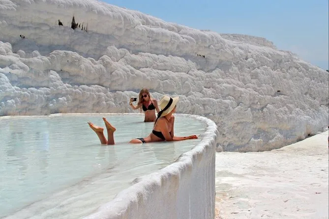 Partez d’Izmir pour découvrir les terrasses blanches presque irréelles de Pamukkale et plonger dans l’histoire au cœur des pierres antiques de Hiérapolis, avant de savourer un déjeuner buffet local à Denizli. Puis arpentez les rues en marbre d’Éphèse avec un guide expert qui fait revivre son passé. Une journée complète riche en découvertes, récits et instants inoubliables.