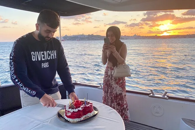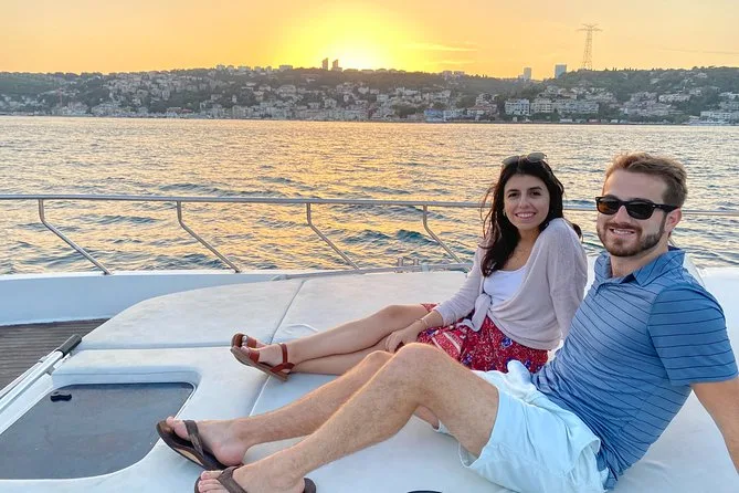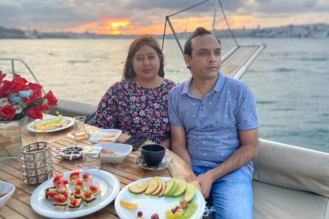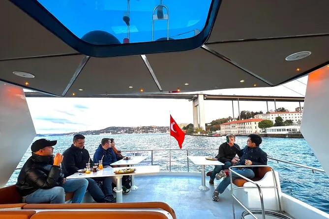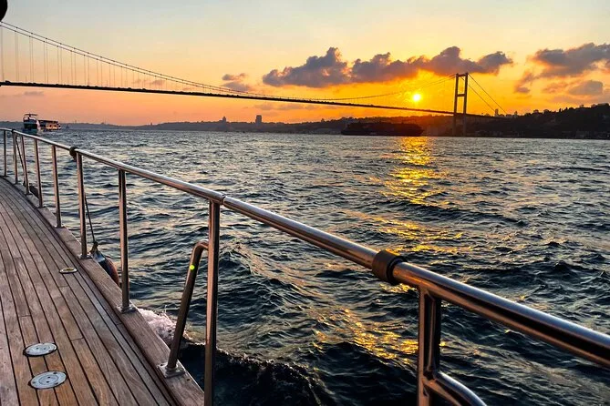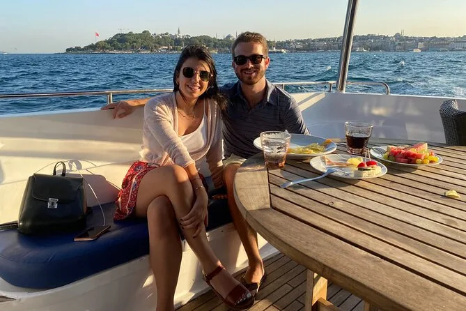 Votre journée comprend un transfert depuis la ville pour rejoindre le yacht près du palais de Dolmabahçe ; deux heures de navigation devant les icônes d’Istanbul avec un guide local expérimenté en direct ; des assiettes de fruits frais de saison ; de délicieux canapés et biscuits turcs ; limonade ou jus maison selon la saison ; thé et café à volonté ; ainsi que des douceurs de baklava — le tout depuis un pont confortable offrant une vue relaxante sur les rives européennes et asiatiques avant le retour au port.